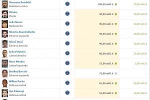 仅登贝莱1人上亿!法甲身价前十:登贝莱1亿欧居首,巴黎10人霸榜