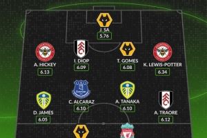 后卫:希基(布伦特福德)、迪奥普(富勒姆)、托迪·戈麦斯(狼队)、刘易斯·波特(布伦特福德)